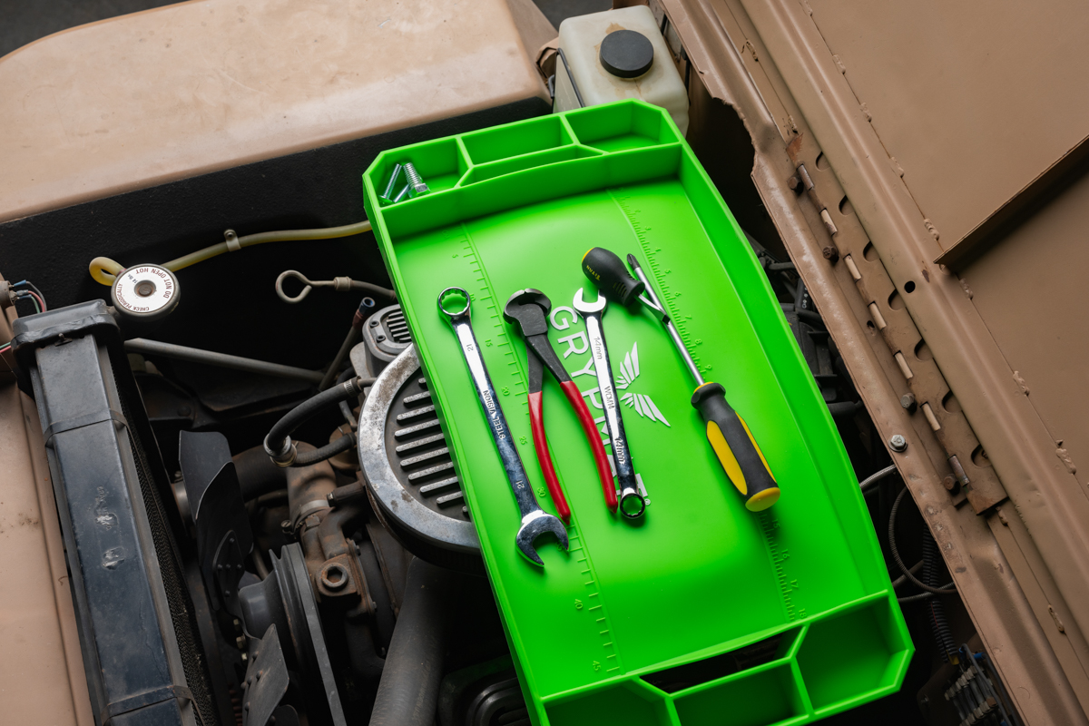 I’ve tried magnetic trays, foam cutouts, and those cheap rubber mats that slide off anything with a 10-degree angle. The Grypmat is the only tool tray I’ve used that actually works on real-world surfaces—curved, angled, hot, oily, whatever.